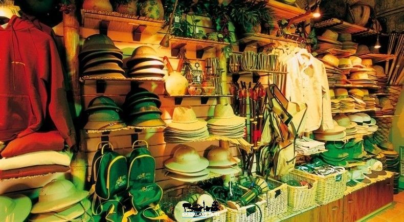 Il negozio prevedeva una serie di gadget dedicati tutto al mondo della Giungla e dell’avventura all’Indiana Jones. Cappelli di paglia, magliette a tema, fruste, statue di elefanti, serpenti, incensi e molto altro ancora per trasportare il visitatore nella giungla Cambogiana.